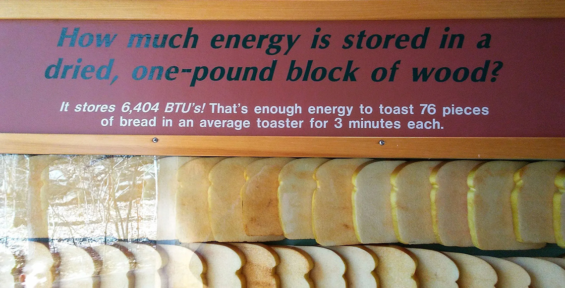 A lot of people don’t realize that burning wood is extremely eco-friendly. As our good friends at the Squam Lakes Science Center have pointed out in the photo above, wood is chock full of valuable heat-producing energy. If that wood is sustainably forested and burned in an eco-certified stove you have a powerhouse heat source that has a low impact on the environment. Here at Black Cat Sweeps LLC we heat and cool our office with a combination of an eco-friendly woodstove and electric heat pumps that run off of solar power. In fact, as of 5/25/2023 our home and office began running mostly on solar power thanks to our good friends at Laplante Electric! We also grow our own foods and preserve them in a freezer running off of solar power. We use gravity-fed rain barrels upcycled from a Portland brewery to water the gardens which are especially important during times of extreme drought.